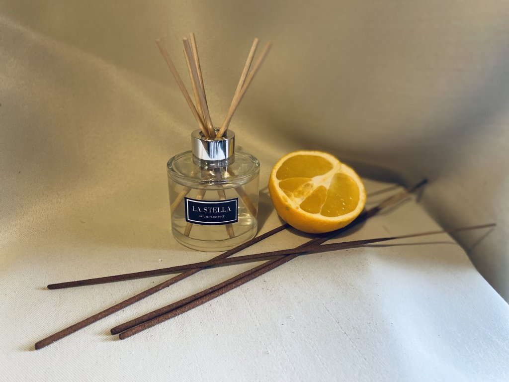 Meditativní SANTALOVÉ DŘEVO se svou sladce teple dřevitou vůní zklidňuje mysl, zmírňuje nespavost, napětí a deprese. Má protizánětlivé účinky a působí také jako afrodiziakum. Veselý POMERANČ přináší radost a optimismus. Ulevuje při úzkosti a neklidu. Svou svěžestí pomáhá při žaludečních potížích, při pálení žáhy i bolestech hlavy.