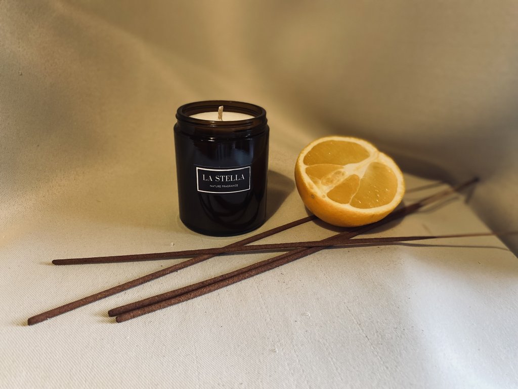 Meditativní SANTALOVÉ DŘEVO se svou sladce teple dřevitou vůní zklidňuje mysl, zmírňuje nespavost, napětí a deprese. Má protizánětlivé účinky a působí také jako afrodiziakum. Veselý POMERANČ přináší radost a optimismus. Ulevuje při úzkosti a neklidu. Svou svěžestí pomáhá při žaludečních potížích, při pálení žáhy i bolestech hlavy.